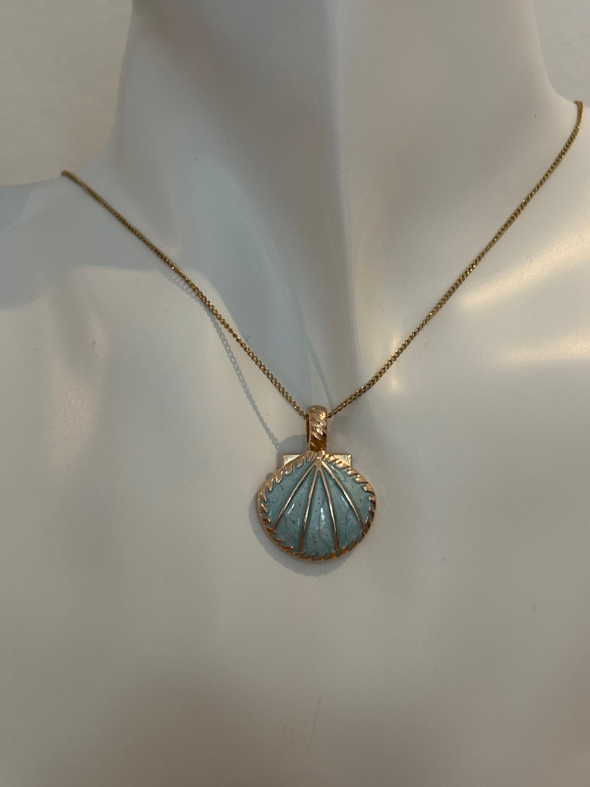 Blue Ocean Shell“ – Vergoldete Kette mit hellblauem Muschel-Anhänger